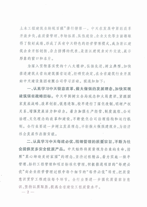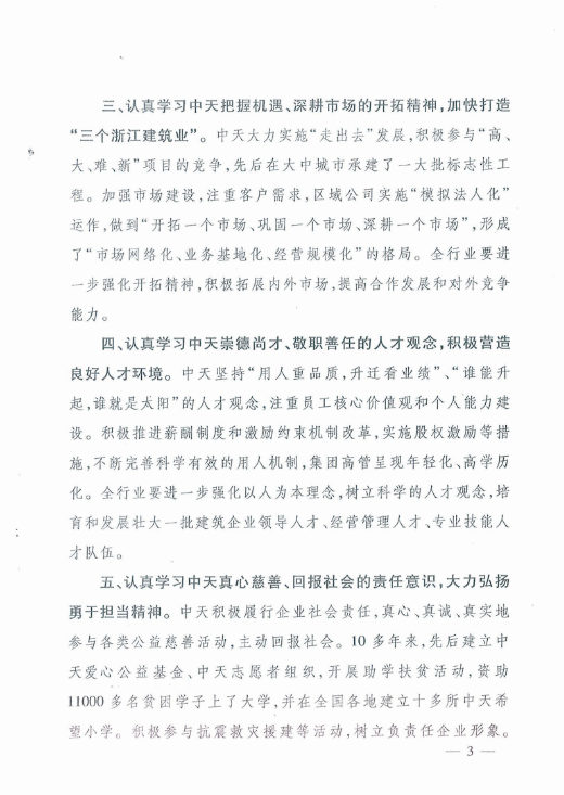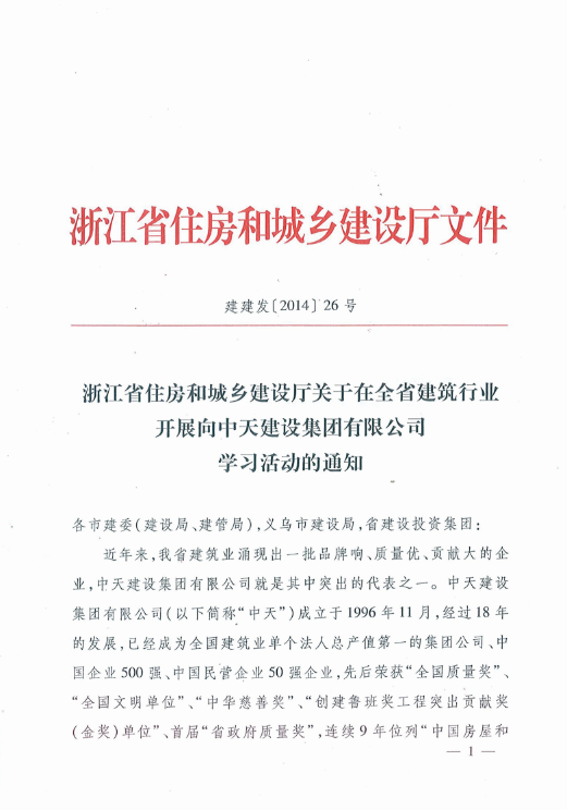《浙江省住房和城乡建设厅关于在全省建筑行业开展向太阳成集团tyc151cc建设集团有限公司学习活动的通知》